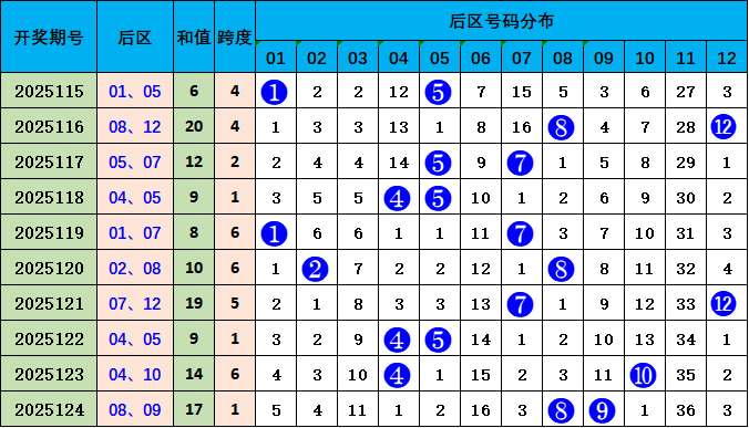 上期后区开出号码08 09,为大大组合,其中开出开出小小组合3期,开出大大组合3期,开出小大组合4期,本期掂量大大组合强势开出,要点温雅号码:08 11。