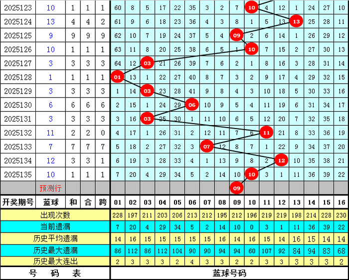 蓝球分析:上期蓝球开出号码10,与前期对比着落2个点位,最近10期蓝球号码大小比为4:6,本期展望大号蓝球再出,精选蓝球09。