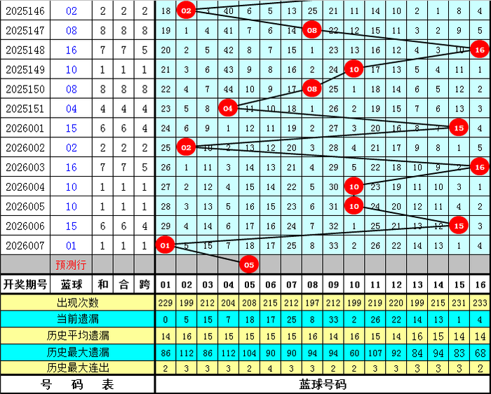 蓝球分析:最近奇数蓝球出现相对较少,本期注目奇数蓝球走热,温雅05、09、11、13。